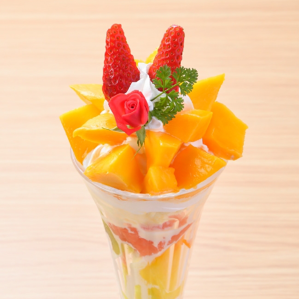 宮崎のマンゴーをふんだんに使用した贅沢なパフェ。