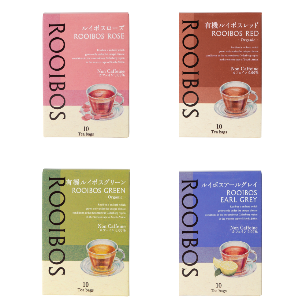 (ルイボスローズ、有機ルイボスレッド、有機ルイボスグリーン、ルイボスアールグレイ)