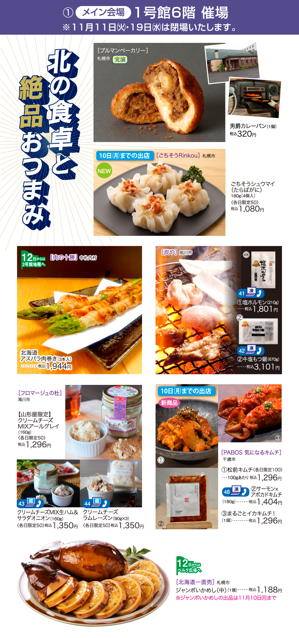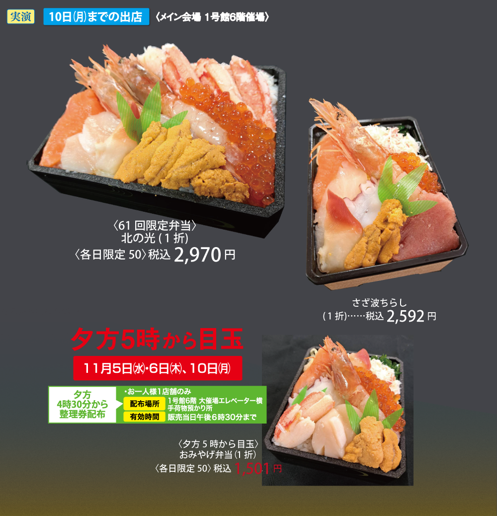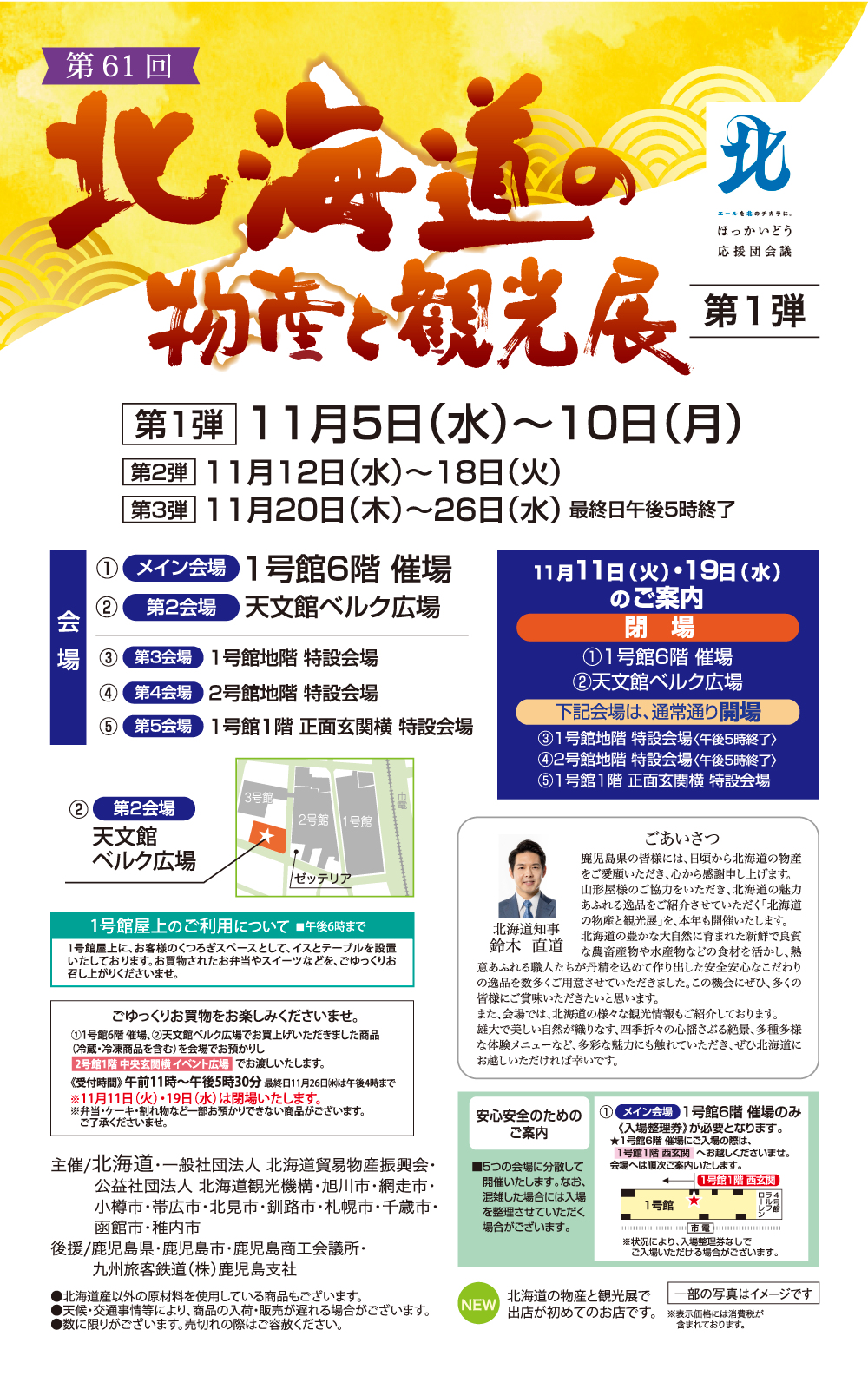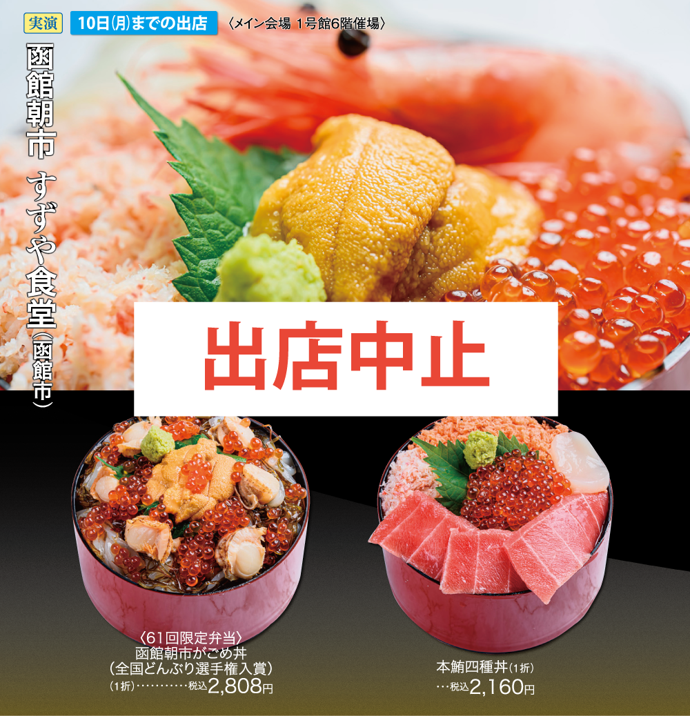 • ななくさレター 冬のeモノコレクション号封入、店頭にて配布しております「第61回 北海道の物産と観光展 第一弾」チラシにて掲載の《函館朝市 すずや食堂》は出店中止となりました。