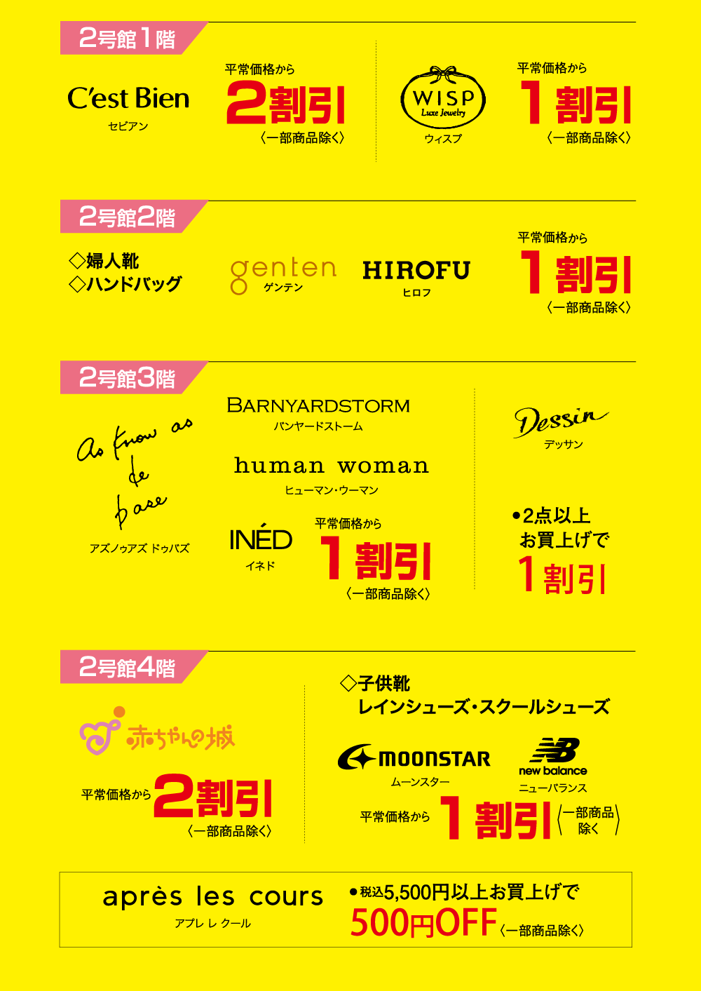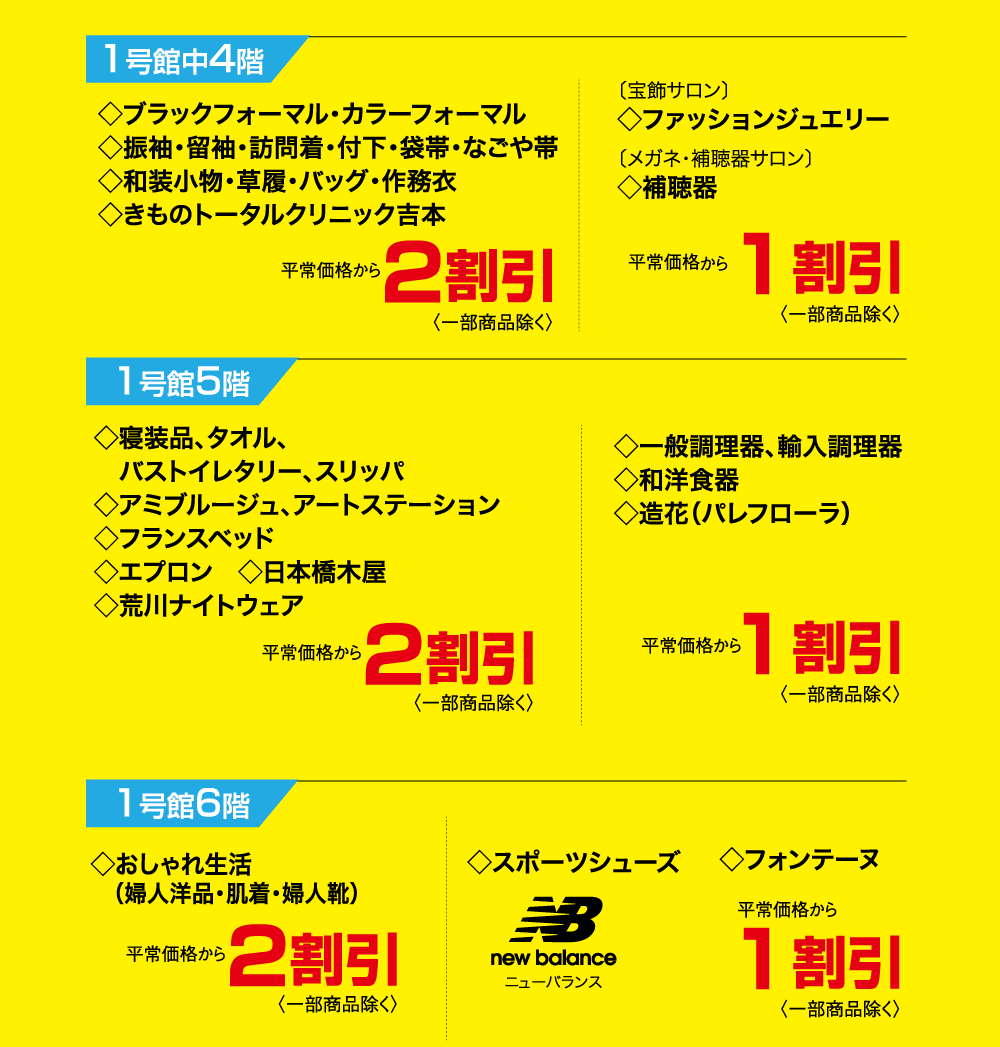 EVENT【1号館】7階ななテラスギャラリー、6階 大催場・南催場、5階 STAGE105、3階 STAGE103、1階 STAGE101、【2号館】6階 山形屋文化ホール、1階 中央玄関横 イベント広場、天文館ベルク広場(山形屋2号館横 ゼッテリア前広場)