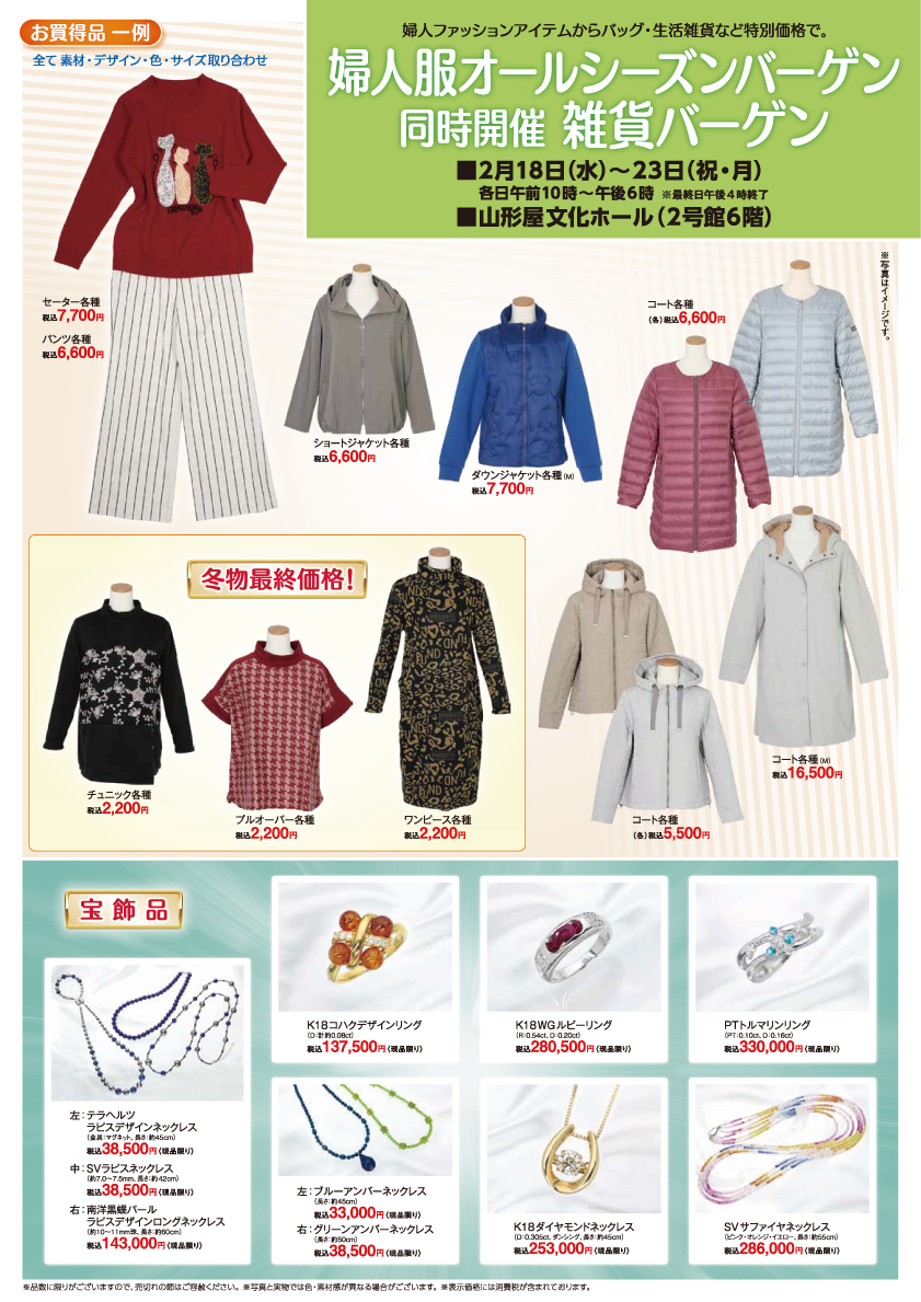婦人服オールシーズンバーゲン[同時開催]雑貨バーゲン