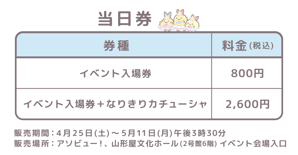 ※イベント会場入口にて販売する「なりきりカチューシャ」は上記会計に含みません。