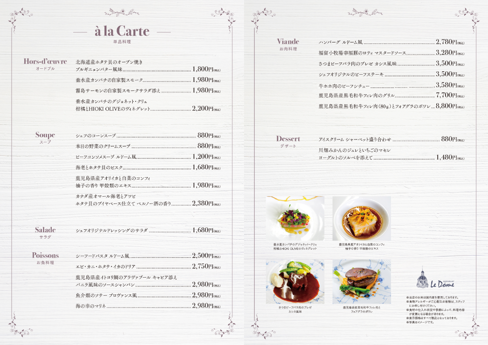本格的フランス料理をカジュアルに楽しめる山形屋のフレンチ「レストラン ル ドーム」。