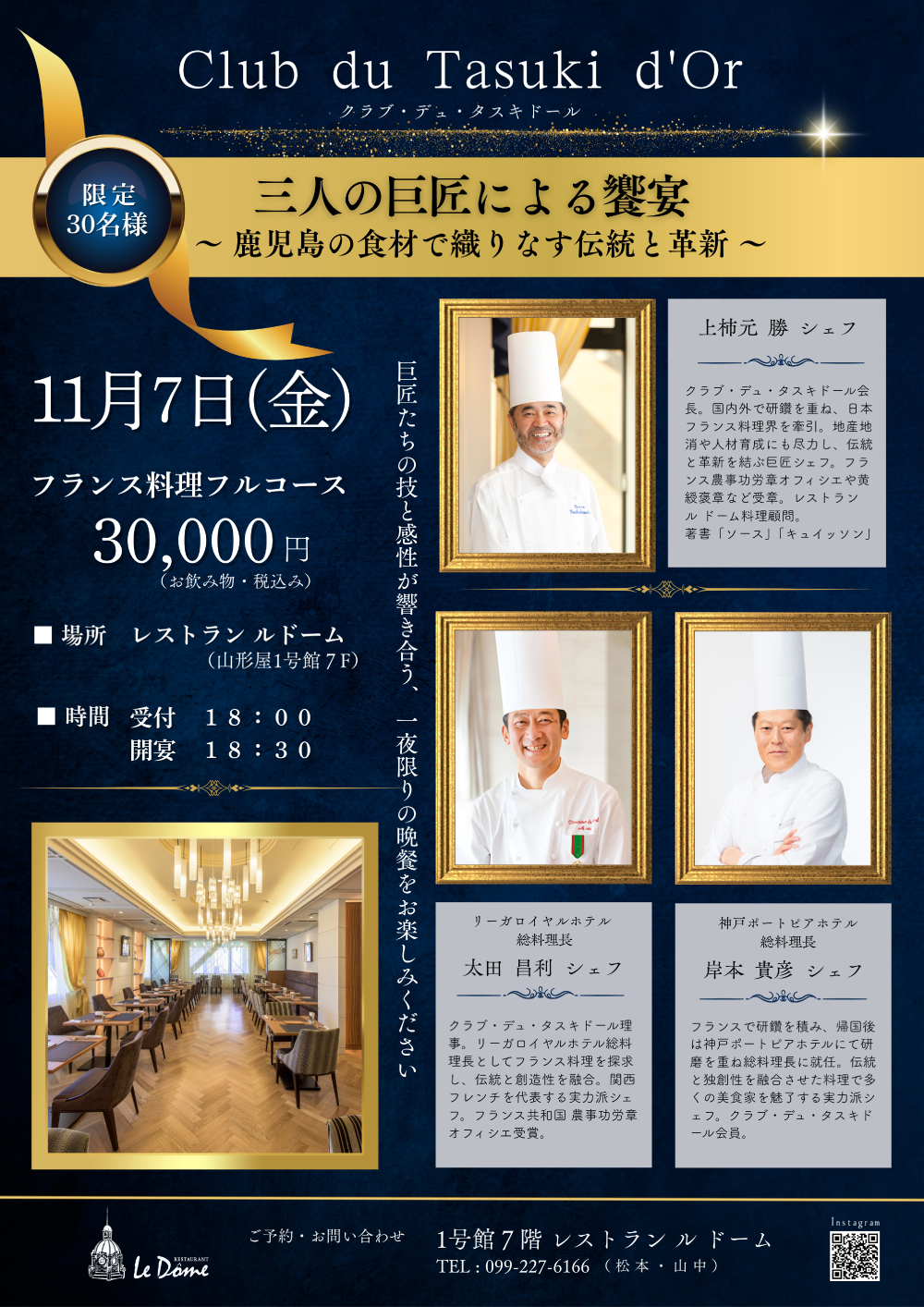 本格的フランス料理をカジュアルに楽しめる山形屋のフレンチ「レストラン ル ドーム」。