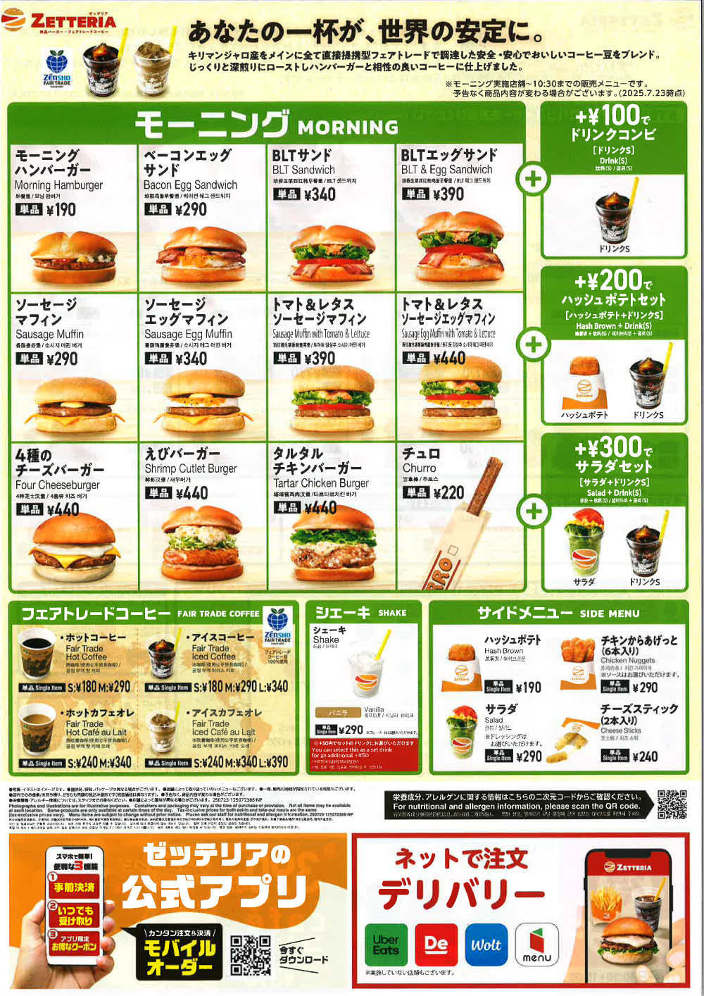 ゼッテリアではペイどん、友の会(カード・金券)、ヤマカタヤカードご提示で5%のサービスはご利用いただけません。
