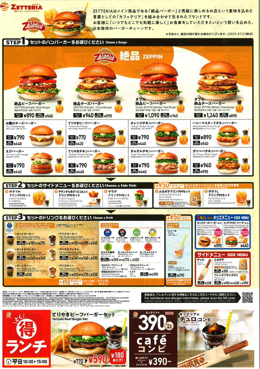 ゼッテリアはメイン商品である「絶品バーガー」と、気楽に楽しめるお店という意味を込めた言葉としての「カフェテリア」を組み合わせて生まれたブランドです。