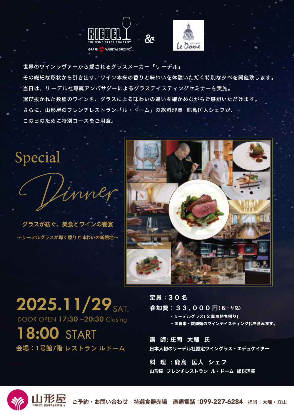 また、フレンチレストラン「ル ドーム」総料理長 鹿島匡人シェフがこの日のために特別コースをご用意。