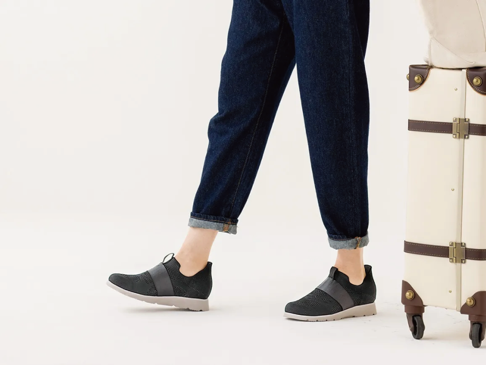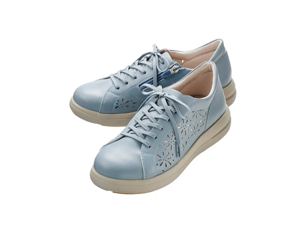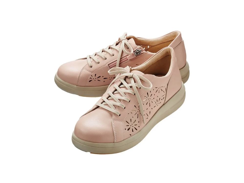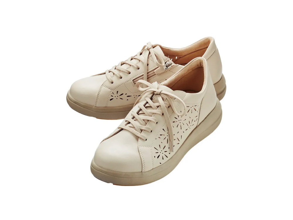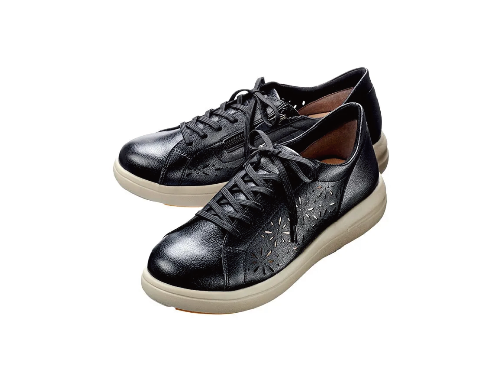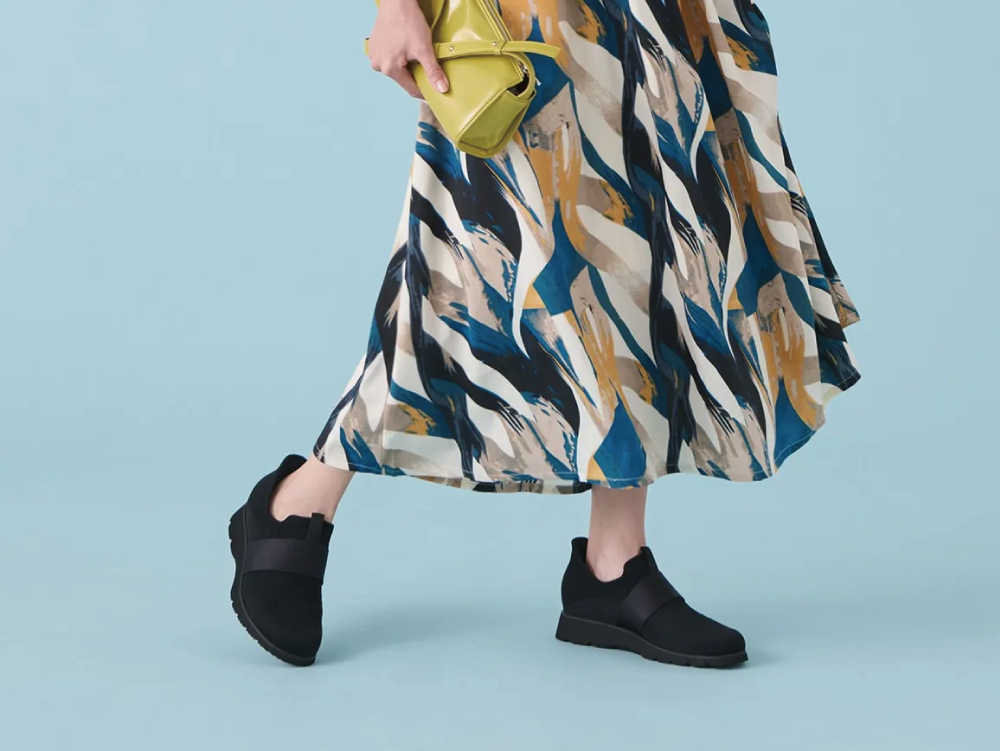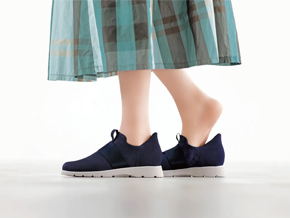 踵しっかり、スポッと手を使わずに履けるスニーカー感覚のシューズ。