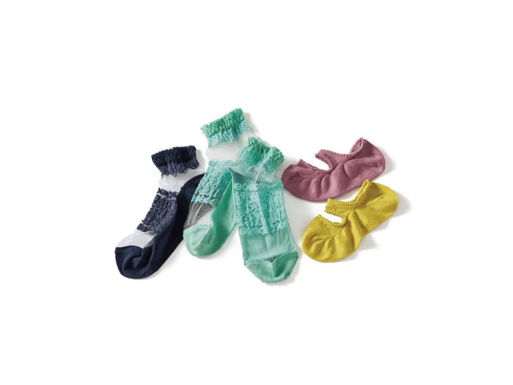 ●甲バンドつきのカバー靴下と、レース風のシアー靴下をセットに