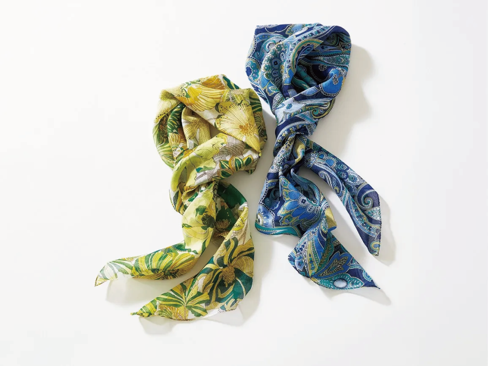年齢が出やすい首元こそ、上品な柄でやさしくカバー。多色使いでも主張しすぎず、大人に似合う柄を厳選。