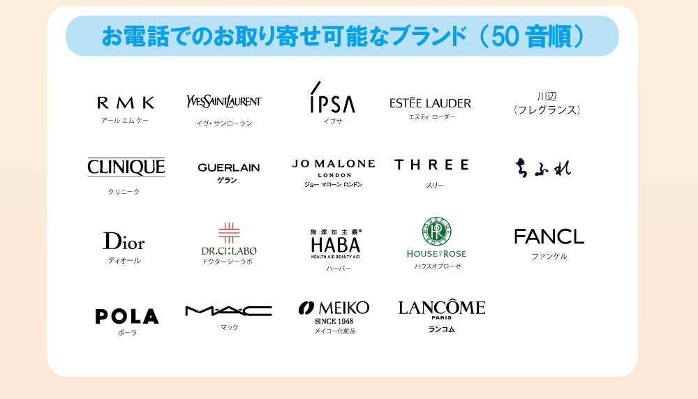 ※お電話でのカウンセリングだけでなく、化粧品売場へご来店してのカウンセリングが必要となる場合がございます。