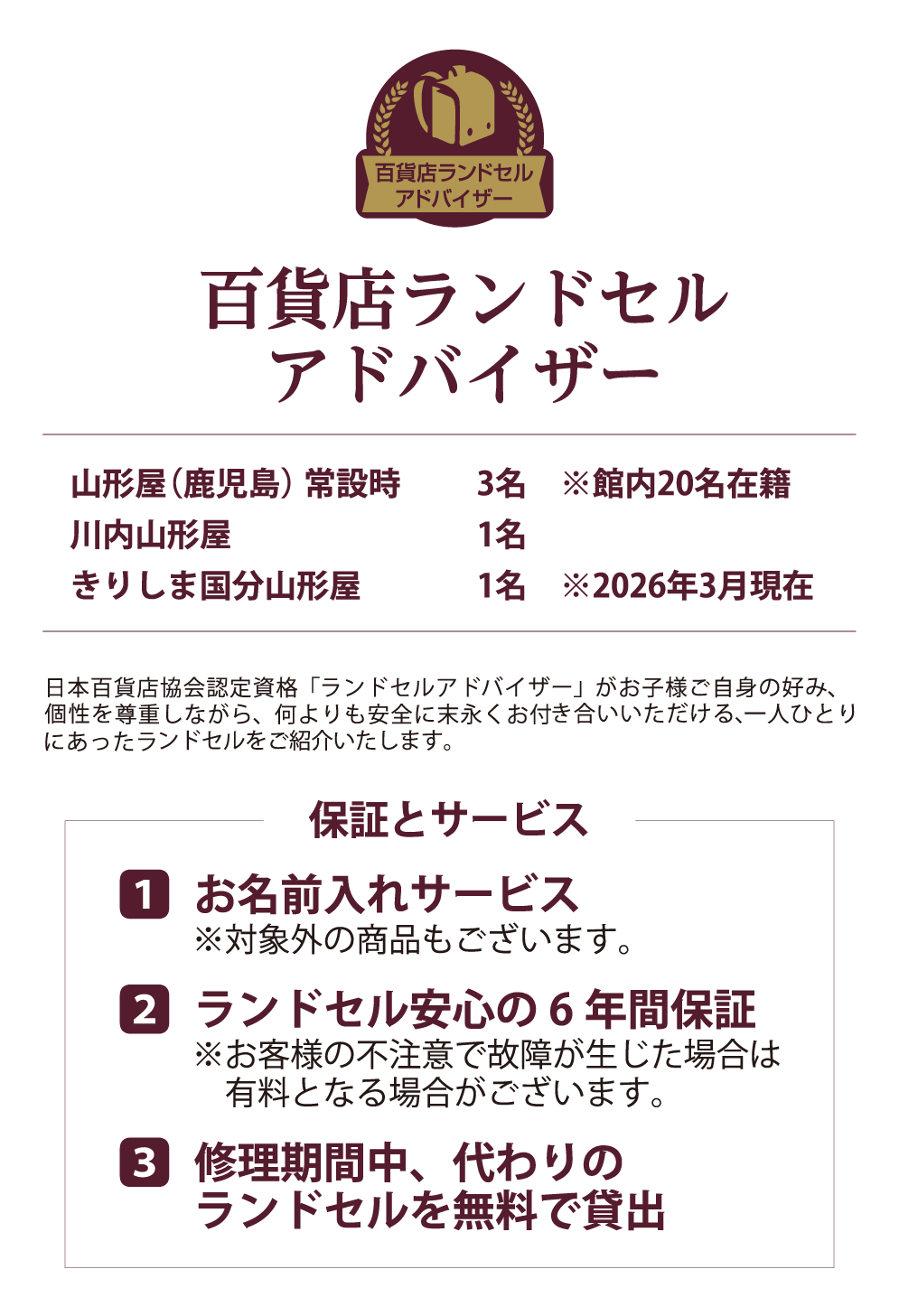 詳しくは、ランドセル売場までお気軽にお問い合わせくださいませ。