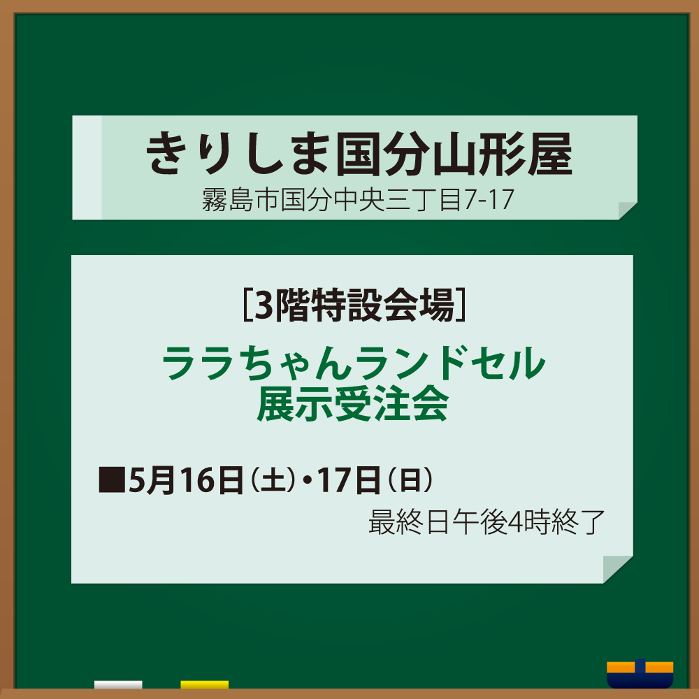 ※「山形屋のランドセルコレクション2027受注会」を5月上旬のゴールデンウイークの期間と、5月末に開催予定です。