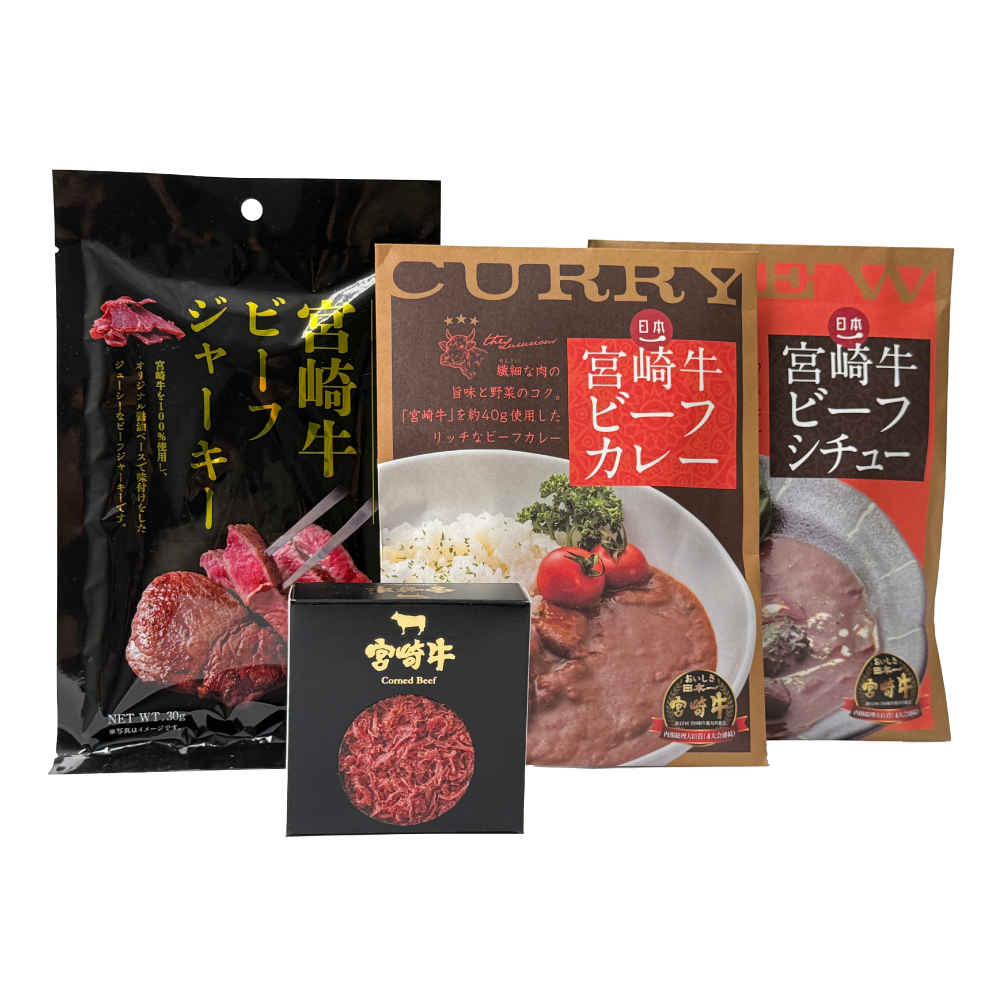 宮崎牛(ビーフシチュー、ビーフカレー、コンビーフ缶、ビーフジャーキー)