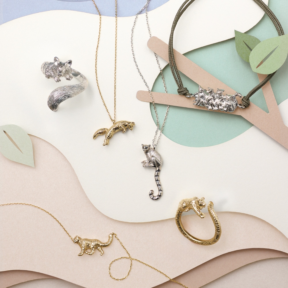 ふっくらとした毛並みまでディテールにこだわったユキヒョウのネックレスなど、新たなアイテムがラインナップ。