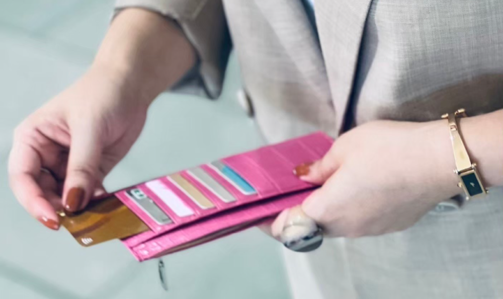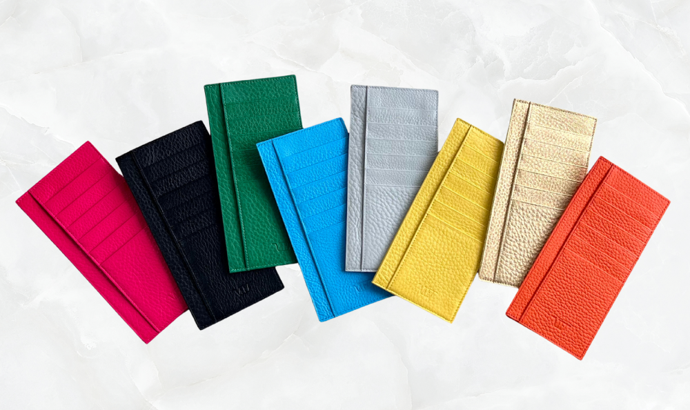 わずか厚さ3ミリ、重さ40gの本革財布。お札、小銭、カード、レシート類を収納可能。