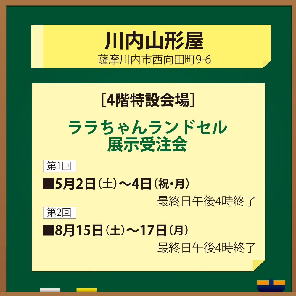 ※「山形屋のランドセルコレクション2027受注会」を5月上旬のゴールデンウイークの期間と、5月末に開催予定です。