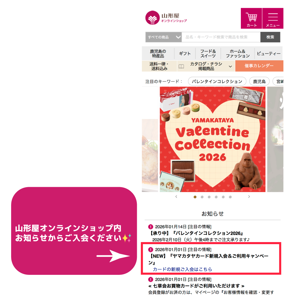 山形屋オンラインショップの専用URLからのご入会 いただくと、ヤマカタヤポイント2,000ポイント進呈いたします✨