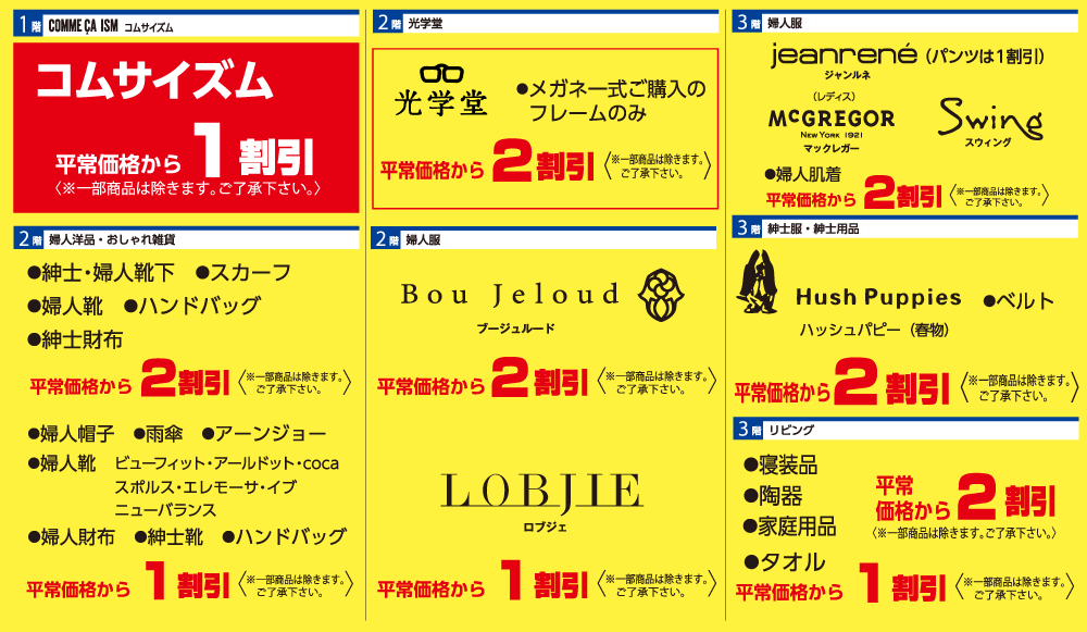 TOP 川内山形屋 イベント 黄札市 EVENTイベント ALL 4/9(木) 4/10(金) 4/11(土) 4/12(日) 4/13(月) 4/14(火) 4/15(水) 4/16(木) 4/17(金) 4/18(土) 4/19(日) 4/20(月) 4/21(火) 4/22(水) 黄札市 シェア Tweet 4月9日(木)~12日(日) 川内山形屋 全館 チラシはこちら♪[1ページ、3.52MB] イベント一覧