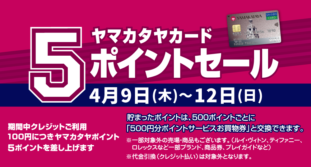 TOP 川内山形屋 イベント ヤマカタヤカード 5ポイントセール EVENTイベント ALL 4/9(木) 4/10(金) 4/11(土) 4/12(日) 4/13(月) 4/14(火) 4/15(水) 4/16(木) 4/17(金) 4/18(土) 4/19(日) 4/20(月) 4/21(火) 4/22(水) ヤマカタヤカード 5ポイントセール シェア Tweet 4月9日(木)~12日(日) 川内山形屋 全館 VISA / Master Card / JCB なら 年会費無料 ヤマカタヤカード(アメリカン・エキスプレス・カード)は年会費:3,300円(税込) ヤマカタヤカードのご案内 イベント一覧