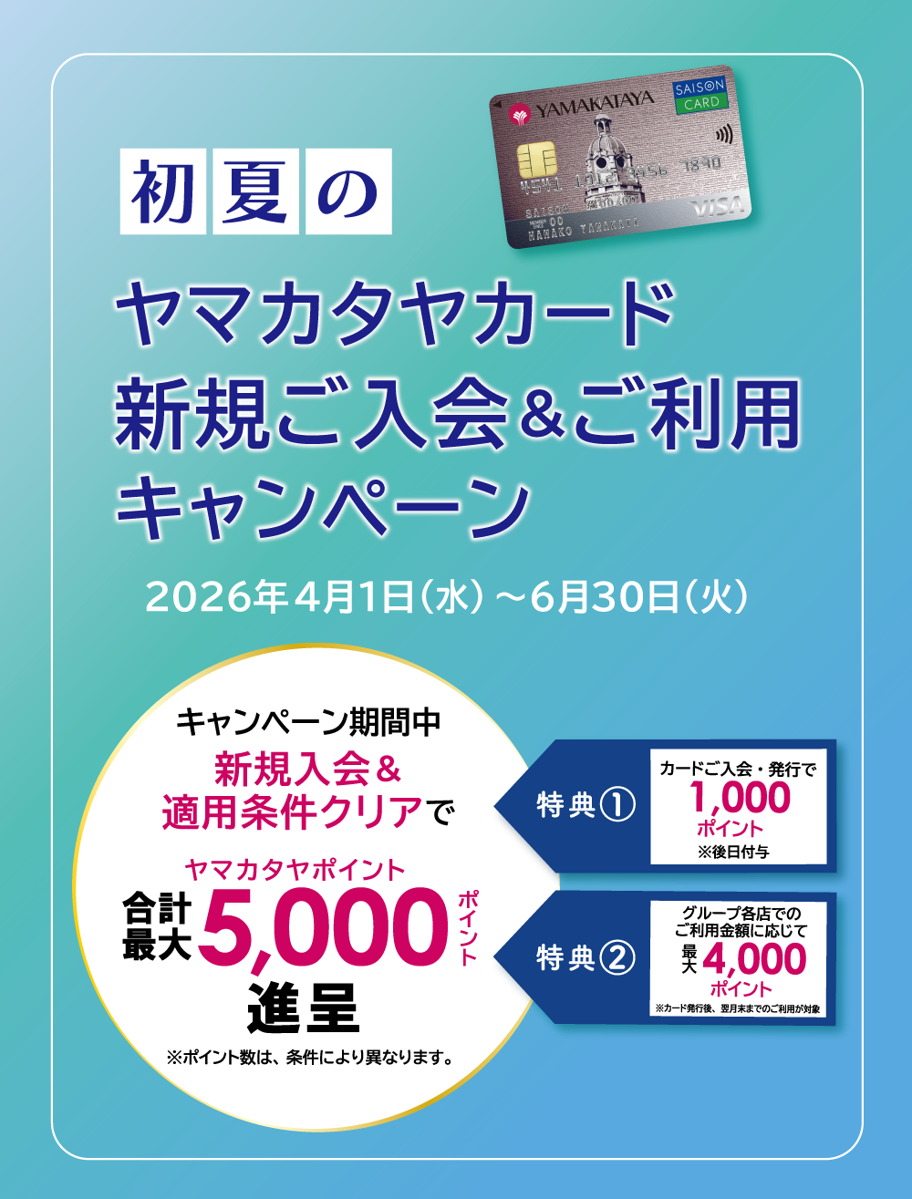 カードご入会でヤマカタヤポイント1,000ポイント進呈いたします✨